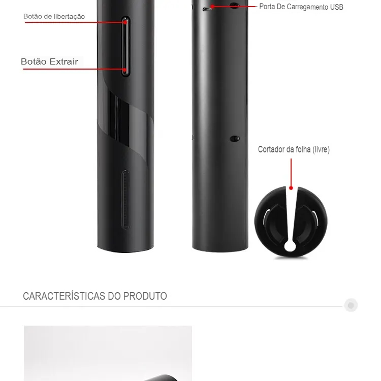 • Cozinha Acessório:Concebido como um dispositivo de cozinha, este abridor de garrafas elétrico é uma adição útil ao seu espaço de cozinha, melhorando a sua experiência de abertura de vinho com a sua função automatizada.