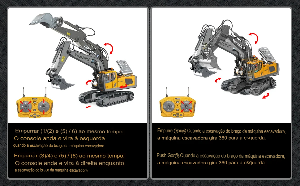 Função: Frente, para trás, vire à direita, esquerda, cavar, demonstração de um clique, o console girar 680, e com música e luz.